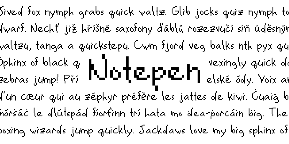 A pixel recreation of my handwriting. To keep things natural and lively, every single letter is unique, including accented characters.