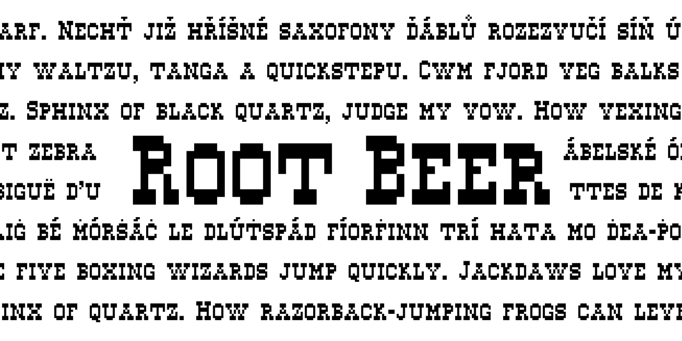 A western-flavored small caps pixel font, named after a favorite beverage of the old west.
